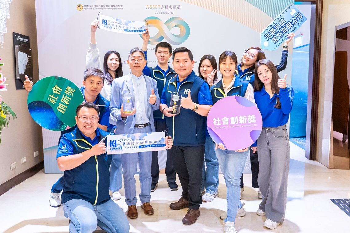 禾康消防股份有限公司於「2026年第八屆 ASSET 永續典範獎」中,一舉榮獲「人才培育獎」與「友善職場獎」雙項肯定,展現公司長期深耕人才發展、打造幸福職場與推動產業升級的具體成果。